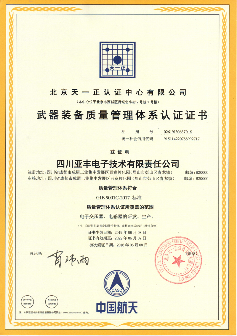 6月5日至6日,亞豐電子順利通過國軍標質(zhì)量管理體系2019年度監(jiān)督暨換版現(xiàn)場審核。